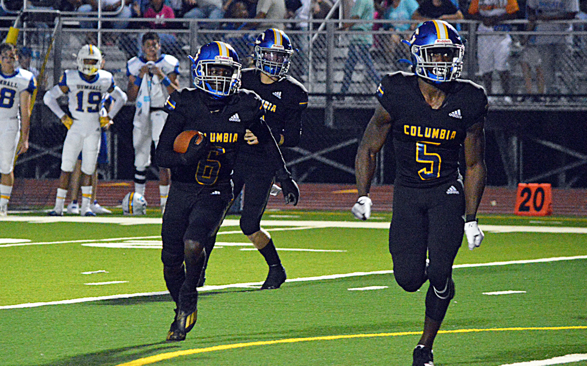 “Everything starts with the quarterback (Sledge),” Columbia head coach Chip Bilderback said. “They will line him up in different spots, and he’ll be there for a reason. Our challenge is just identifying where he’s at, identifying formations and what we think we’re going to get from, but the bottom line is our kids just need to continue to improve and get better.