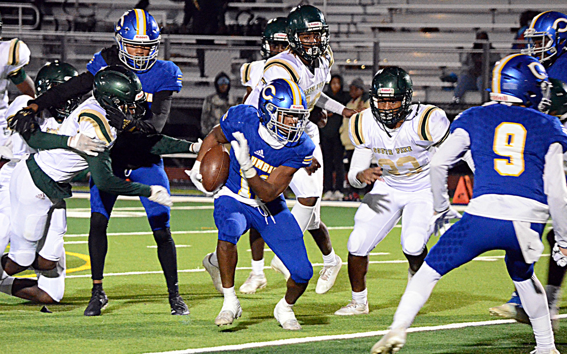 Columbia’s defense stuffed South Pike on the Eagles’ first possession to force a three-and-out and set up Columbia’s second first-quarter touchdown. Carter Smith, who is on pace to have the best completion percentage of any Marion County quarterback in the past decade, added to his stellar senior season with a 14-yard touchdown pass to Josh Brown, and Amarion Fortenberry made it 14-0 with the 2-point conversion.