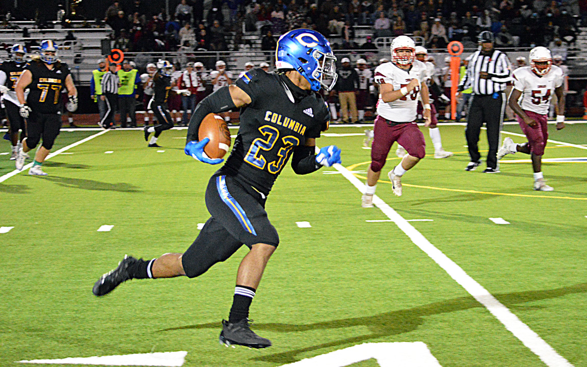 With the district title on the line Friday night at Walter Payton Field, Columbia cruised in the second half to claim the Region 7-4A championship with a 41-14 win over Lawrence County.