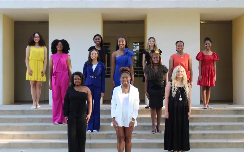 Columbia High School 2023 homecoming court includes, front row, from left, Maid of Honor Destini Armstrong, Homecoming Queen Chenadi Marshall and Maid of Honor Ally Purvis; second row, Blue Maid Heaven Kelly and Gold Maid Holli Lee; third row, Academic Maid Raelyn Powell, Athletic Maid Payshunce Sims and Activity Maid Bailey Expose; back row, Senior Maid Jamilyn McCoy, Junior Maid Adrieyana Fortenberry, Sophomore Maid Adrianna Williamson and Freshman Maid Destiny Henry. | Photos submitted