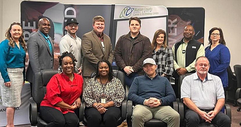 Marion County Carl Loftin Career and Technology Center hosted its annual career and industry day on Feb. 6. Amy Baughman, Student Services Coordinator, invited community leaders into classrooms to speak to second year career and technical education students about career and industry updates and personal professional experiences. Front row, from left, Denisha Scott, Culinary Arts; Tyronica Neapollioun, Early Childhood Education; Nathaniel Simmons, Welding; and Keith Conerly, Construction, back row; Melissa Kossman, Sports Medicine; Keith McMillan, Law and Public Safety; Chris Crawford, Digital Media; Jay Raybourn, Educator Preparation; Parker Dungan, Engineering; Jan Sears, Work-Based Learning; Byron Franklin, Automotive Services; and Shari Bryant, Health Sciences.