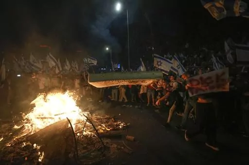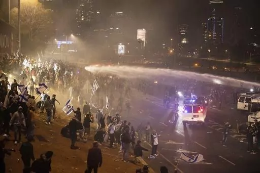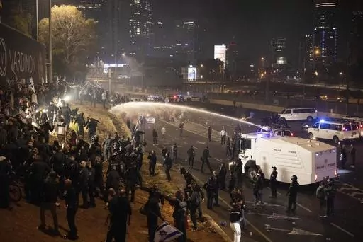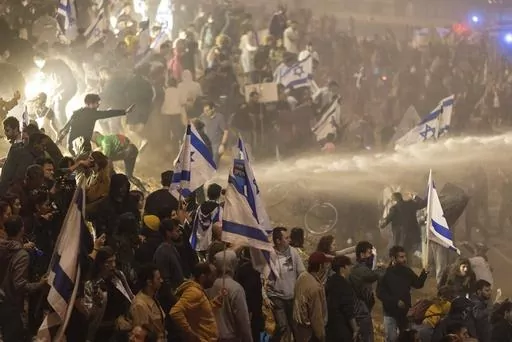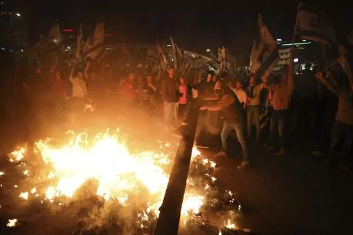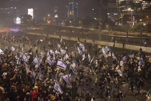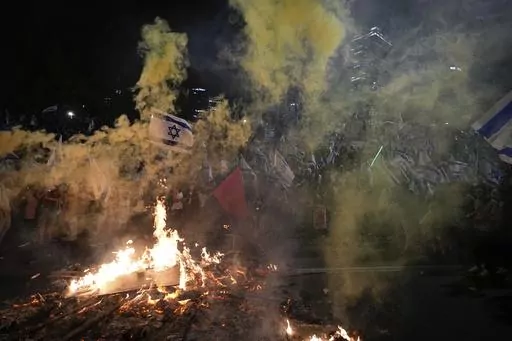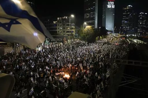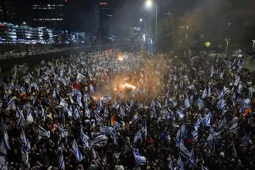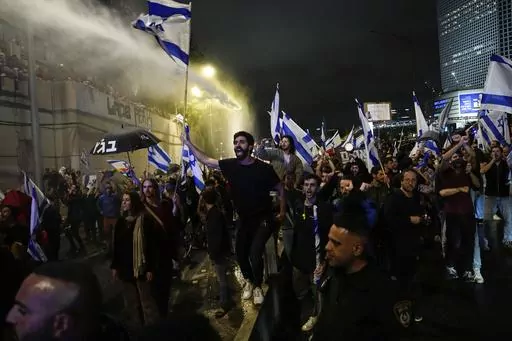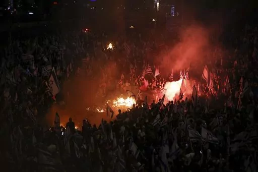 JERUSALEM (AP) — Tens of thousands of Israelis poured into the streets of cities across the country Sunday night in a spontaneous outburst of anger after Prime Minister Benjamin Netanyahu abruptly fired his defense minister for challenging the Israeli leader's judicial overhaul plan.