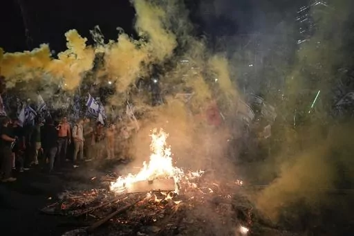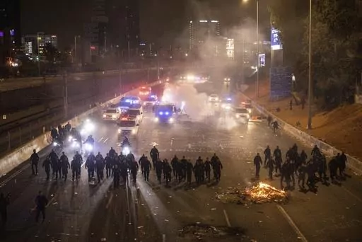 Protesters in Tel Aviv blocked a main highway and lit large bonfires, while police scuffled with protesters who gathered outside Netanyahu's private home in Jerusalem.