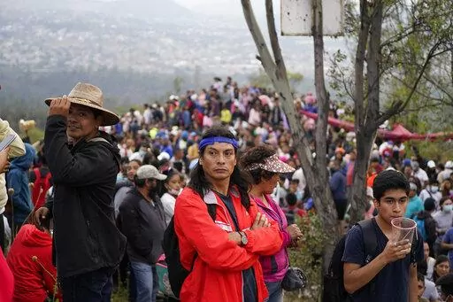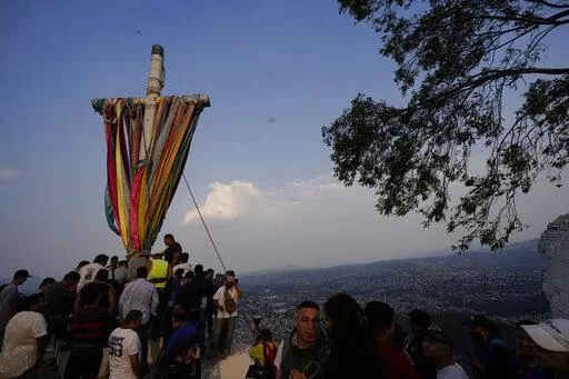 The ceremony on the Cerro de Xochitepec came a day before the formal day on the church calendar, Tuesday, when the cross is the centerpiece of a Mass and a new one is adorned for a return trek up the hill in a week.