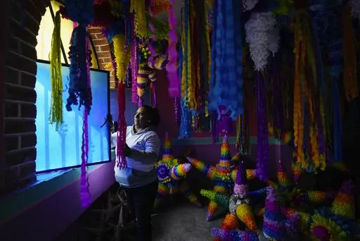 ACOLMAN, Mexico (AP) — María de Lourdes Ortiz Zacarías swiftly cuts hundreds of strips of newsprint and colored crepe paper needed to make a piñata, soothed by Norteño music on the radio while measuring pieces by feel.