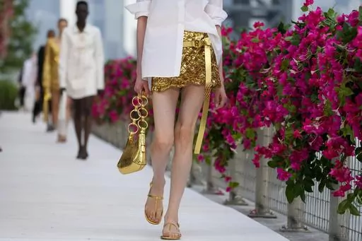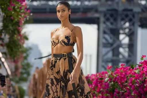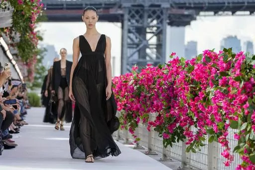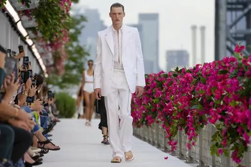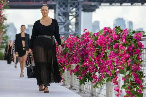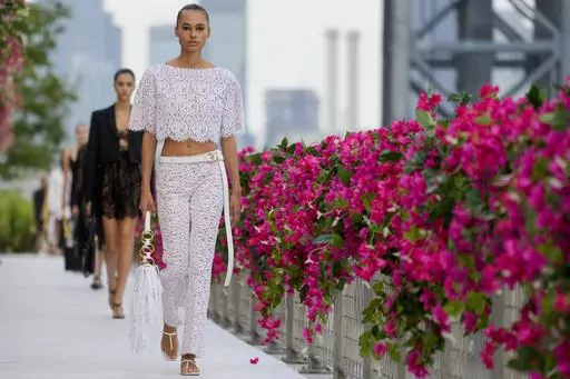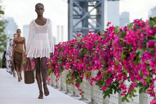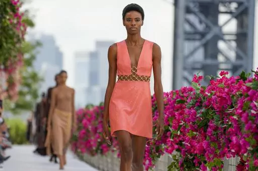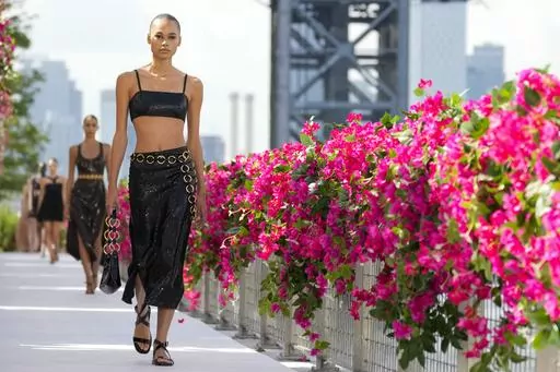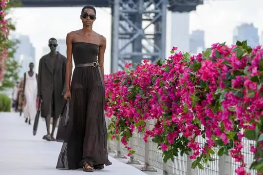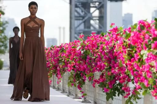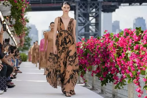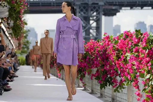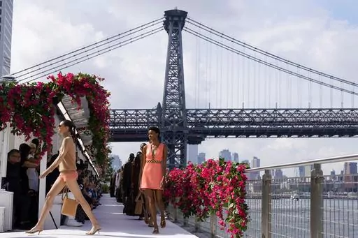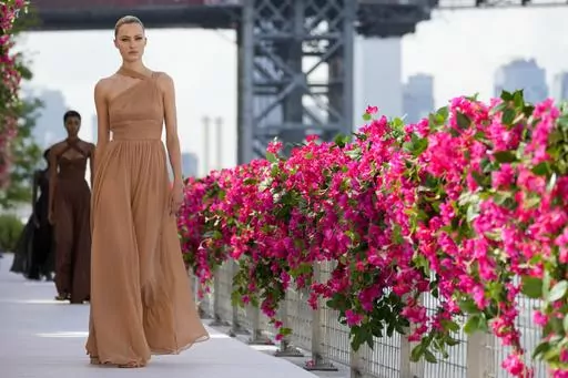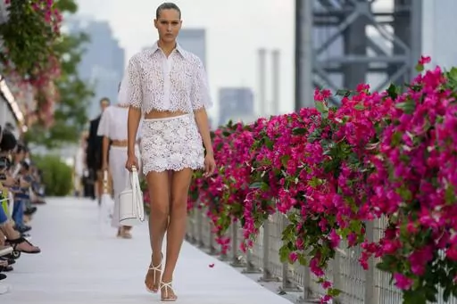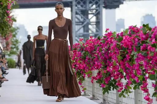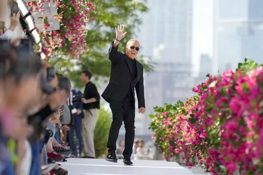 NEW YORK (AP) — On a waterfront promenade lined with pink flowers and facing Manhattan’s majestic skyline, designer Michael Kors paid tribute to his late mother with a show honoring the travels the two enjoyed together.