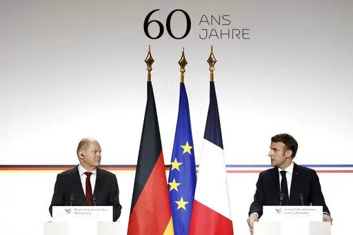 Macron spoke during a news conference in Paris with German Chancellor Olaf Scholz as France and Germany commemorated the 60th anniversary of their post-World War II friendship treaty. In a joint declaration, the two countries committed to their “unwavering support” for Ukraine.