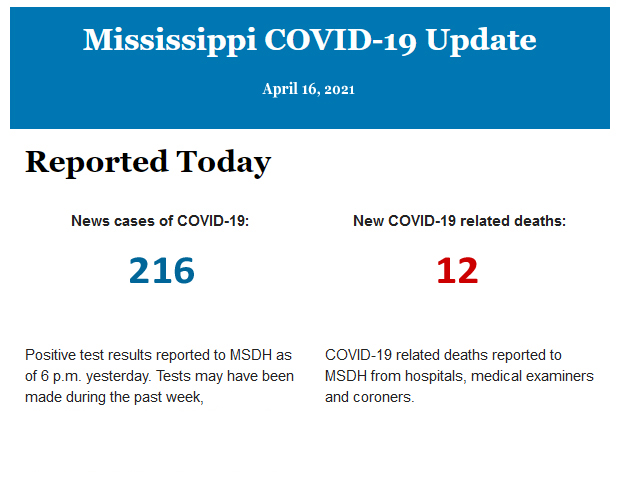 Listed below is the daily COVID-19 update for the state of Mississippi.
