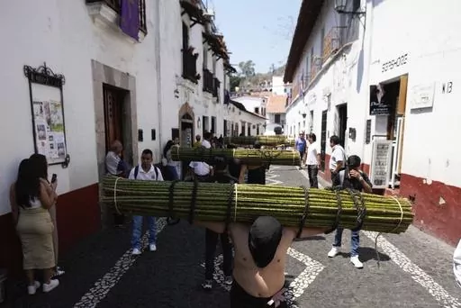 People crowded Taxco's colonial streets to watch hooded men walking while whipping themselves or carrying heavy bundles of thorns across their bare shoulders in penitence to emulate the suffering of Jesus Christ carrying the cross.