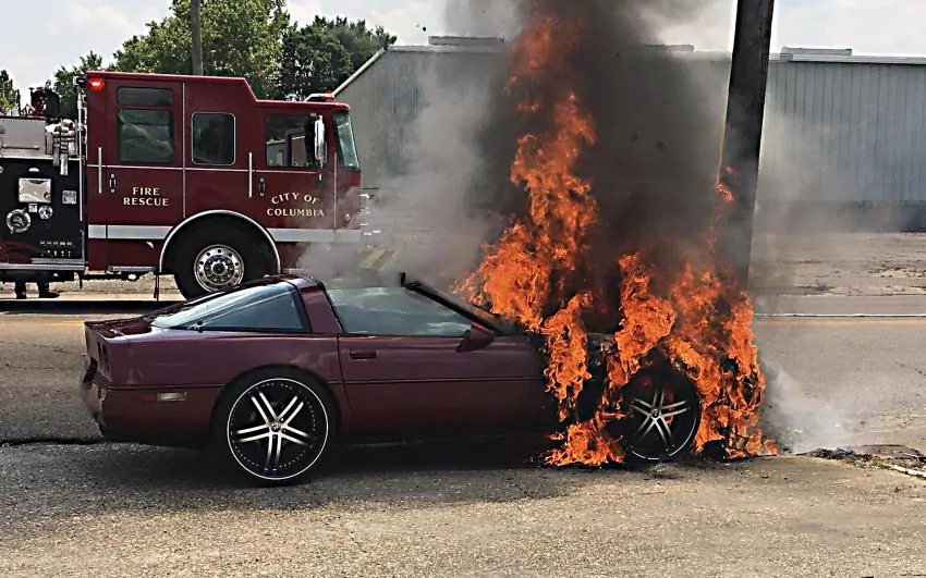 Owner Reginald R. Young of Columbia said he was driving in his 1984 Corvette near 2 p.m. coming from South High School Avenue when the fire began.