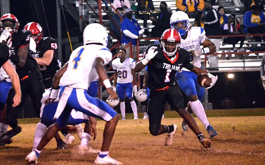 During Ridgeland’s first 10-play possession, West Marion forced a turnover on downs without allowing a yard. The Trojans responded with a turnover on downs of their own then picked up two first downs on Larry Magee and Jakaden Mark runs.