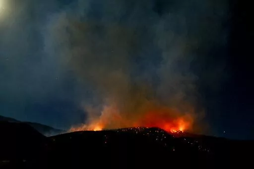 In California, firefighters reported significant progress against a wildfire near the San Gabriel Mountains community of Wrightwood, but evacuation orders and warnings remained in place. The blaze has scorched about 1.5 square miles (3.9 square kilometers) since erupting over the weekend and was 27% contained.