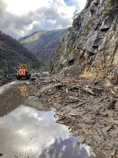 In a wildfire-related situation, a 50-mile (80-km) stretch of State Route 70 in Northern California remained closed indefinitely after mud, boulders and dead trees inundated lanes during flash floods along a burn scar.