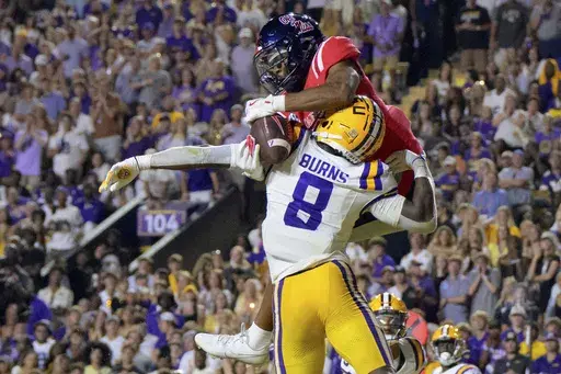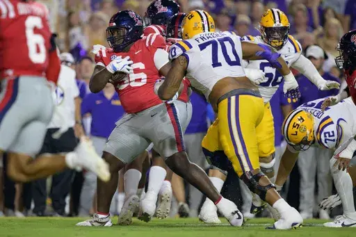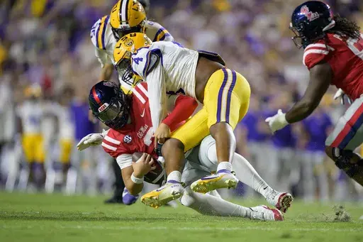 LSU sacked Dart six times, intercepted him once, recovered a fumble and had a fourth-down stop at their own 5 while holding the Rebels well below their scoring average of 44 points coming in. Bradyn Swinson had two sacks, giving him seven this season.