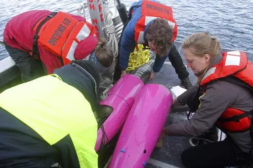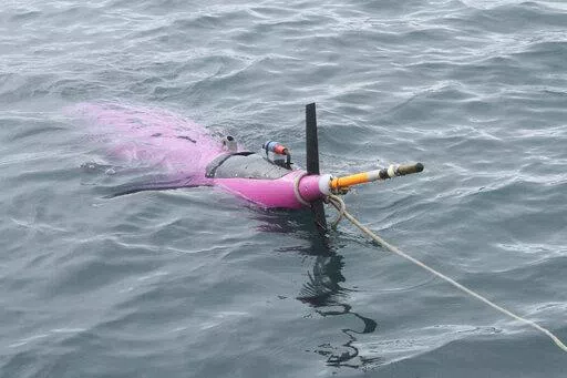 Instead, everyone aboard the Nanuq, a University of Alaska Fairbanks research vessel, was looking where a 5-foot (1.52-meter) long, bright pink underwater sea glider surfaced.