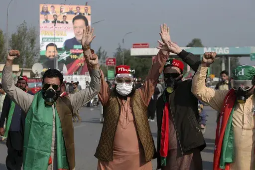 PTI spokesperson Sheikh Waqas Akram said Khan's wife Bushra Bibi was traveling to Islamabad in a convoy led by the chief minister of Khyber Pakhtunkhwa, Ali Amin Gandapur.