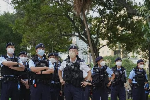 HONG KONG (AP) — Heavy police force patrolled Hong Kong’s Victoria Park on Saturday after authorities for a third consecutive year banned public commemoration of the anniversary of the deadly Tiananmen Square crackdown in 1989, with vigils overseas the only place marking the event.