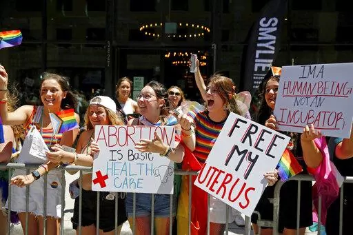 In San Francisco, some marchers and spectators held signs condemning the court’s abortion ruling. U.S. House Speaker Nancy Pelosi, who rode in a convertible holding a gavel and a rainbow fan, said the large turnout was an acknowledgement that Americans support gay rights.
