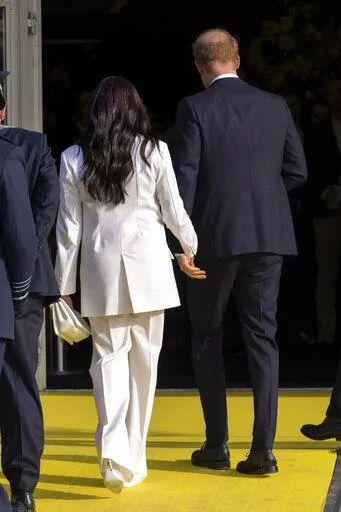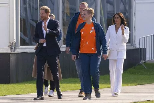 Harry and Meghan got an enthusiastic welcome from cheering competitors at the games site in a park in The Hague. The event opens Saturday and runs through April 22.