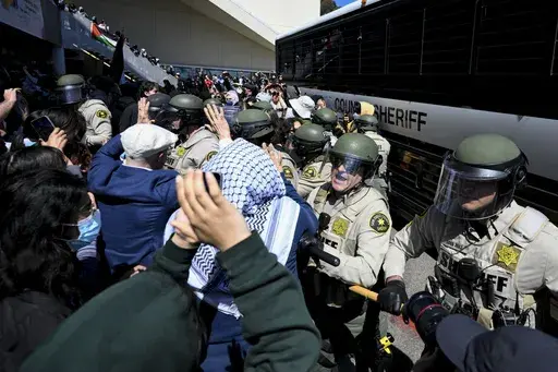 Pro-Israel groups that circulated the protester's photo claim that she was soon fired by her employer. An employee who answered the phone at the company confirmed that the woman had not worked there since early this year. In a brief phone conversation, the protester, who has not been charged with any wrongdoing, declined to comment on the advice of an attorney.