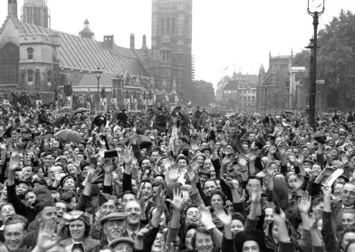 “We cheered the king and queen on the balcony and then walked miles through the streets,” she later recalled. “I remember lines of unknown people linking arms and walking down Whitehall, all of us just swept along on a tide of happiness and relief.”