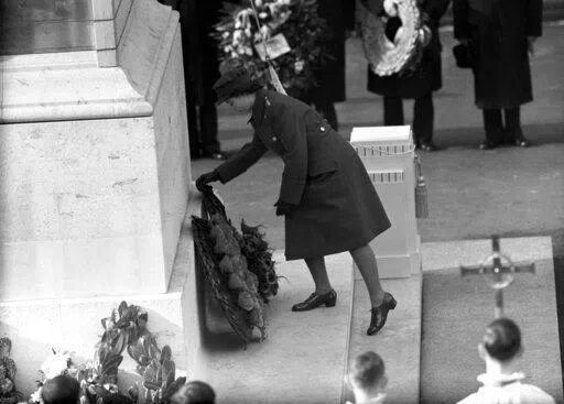 Elizabeth, who famously saved ration coupons to make her wedding dress in 1947, led a ceremony of remembrance for all the nation’s fallen service personnel each year on the anniversary of the end of World War I.
