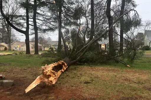 Winds topping 70 mph (112 kph) were possible for the middle of Tennessee, with a chance of tornadoes as well as hail as large as 2 inches (5 centimeters) Sunday night, the National Weather Service said.