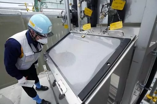 OKUMA, Japan (AP) — At a small section of the Fukushima Daiichi nuclear plant’s central control room, the treated water transfer switch is on. A graph on a computer monitor nearby shows a steady decrease of water levels as treated radioactive wastewater is diluted and released into the Pacific Ocean.
