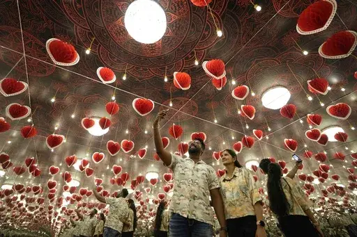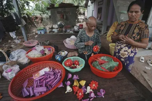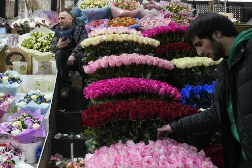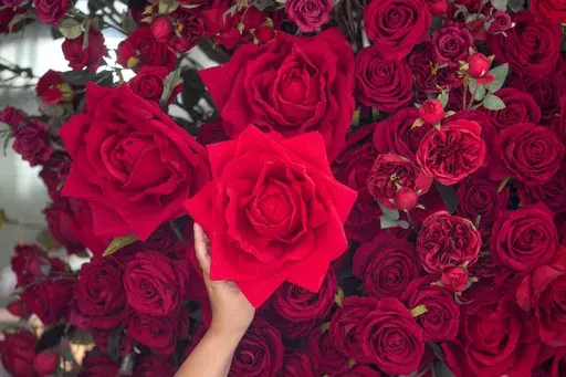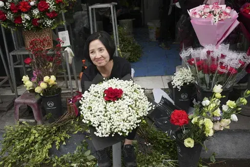 And in a different take on the tradition of giving flowers to one's Valentine, in Cambodia's southern Phnom Penh, villagers made flowers from corn husks in Tnout Chum Village. While back to the traditional, a florist arranged a rose bouquet outside a flower shop in Hanoi, Vietnam.