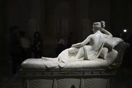 In Rome, flowers were placed next to “St. Valentine Skull” in the Santa Maria in Cosmedin Basilica. On Thursday, visitors admired the statue “Paolina Borghese as Venus Victorious” during an event at the Galleria Borghese museum.