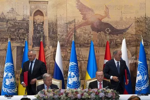 Documents obtained by The Associated Press showed the deals called for the creation of a U.N.-led joint coordination center in Istanbul where officials from Ukraine, Russia and Turkey would oversee the scheduling and searches of cargo ships.