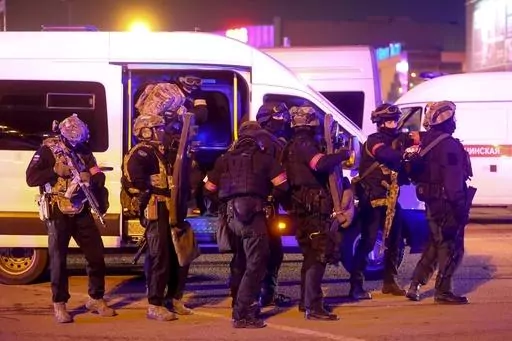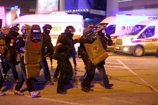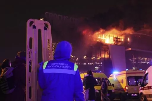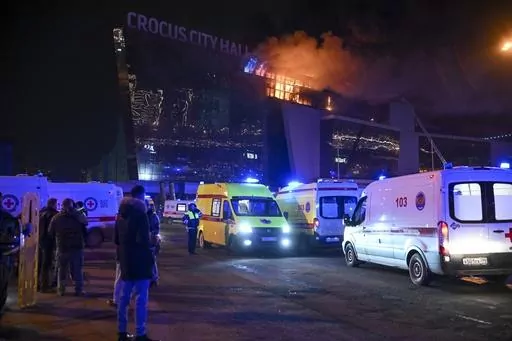 MOSCOW (AP) — Assailants burst into a large concert hall in Moscow on Friday and sprayed the crowd with gunfire, killing over 60 people, injuring more than 100 and setting fire to the venue in a brazen attack just days after President Vladimir Putin cemented his grip on power in a highly orchestrated electoral landslide.