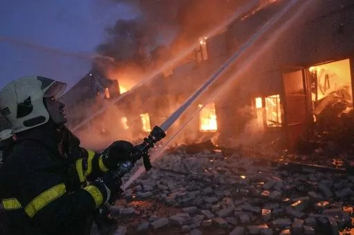 A fire broke out in an apartment building in the capital, Kyiv, Thursday after it was hit by the remnants of a downed Russian rocket, killing one person and injuring at least three others, according to emergency services. Fighting continued in Kyiv's suburbs, depriving thousands of heat and clean water.