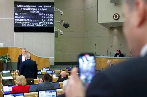 MOSCOW (AP) — Russian lawmakers on Thursday gave their final approval to a bill that significantly expands restrictions on activities seen as promoting gay rights in the country, another step in a years-long crackdown on the country's embattled LGBTQ community.