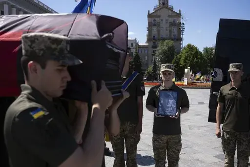 At the farewell ceremony, Ukrainian soldiers carried Fouché's coffin through Kyiv’s landmark Independence Square, the site of mass protests in 2014 that forced out a pro-Russian president, towards a memorial for the country's fallen defenders. Fouché's comrades held back tears as they lined up to say goodbye. Mourners read prayers as they held up Ukrainian flags and military banners.