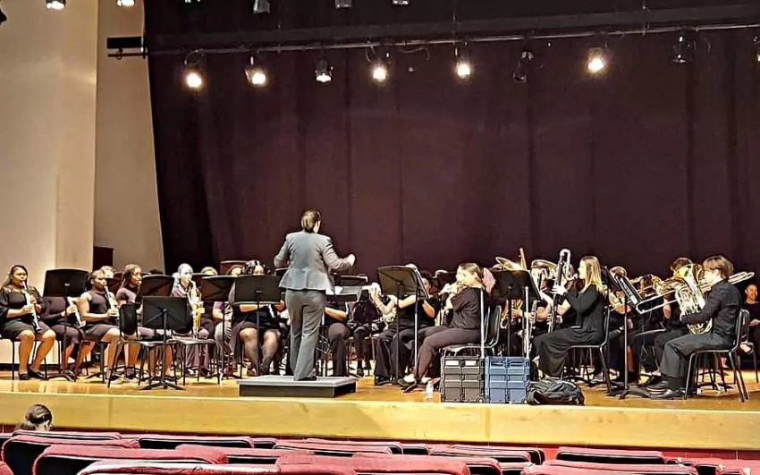 Sweepstake Award is the perfect score any band program can achieve. Students receive a red, white and blue medal for this accomplishment. It starts with the marching band earning all superior ratings at state marching evaluations. That is a superior rating given by all judges in marching band, percussion, color guard and drum major.