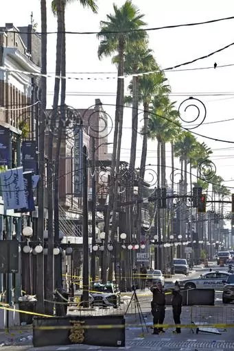 Video posted online shows people, many in Halloween costumes, drinking and talking on the street when about a dozen shots ring out, followed seconds later by about eight more. A stampede ensued, with some people toppling over metal tables and taking cover behind them. Video from the aftermath shows police officers treating several people lying wounded on the ground.
