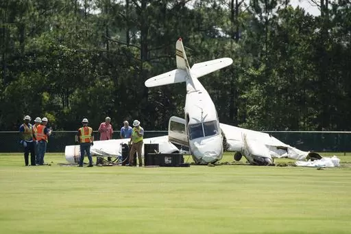 OCEAN SPRINGS, Miss. (AP) — A small plane crashed just after takeoff Friday in Mississippi, landing on a practice field at Ocean Springs Middle School, police said.