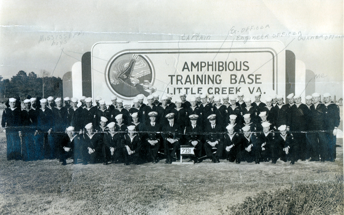 Pictured Above: Glyn Belton Porter is pictured in the back row, fourth from the right, during World War II at a Navy training base in Virginia. Porter spent his time working on landing ship mediums, which carried troops and equipment to and from the shore.