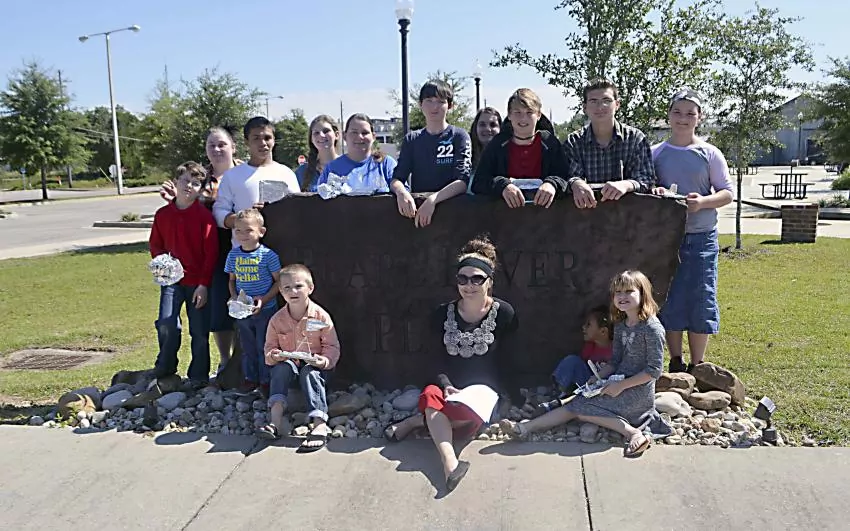 Pictured Above: Students and instructors from area home schools gathered at the Pearl River Interpretive Plaza earlier this week. Participants included, front row from left, Mason Bridges, Xander Bullock, Christina Alexander, Jonah Dunaway and Maya Dickson. In back from left are Jaydon Dickson, Paige Davis, Alex Vargas, Anna Stephens, Melissa Corral, Clayton Powell, Taylor Morris, Adam Alexander, Jonathan Bullock and Kyra Bullock. | Photo by Mark Rogers