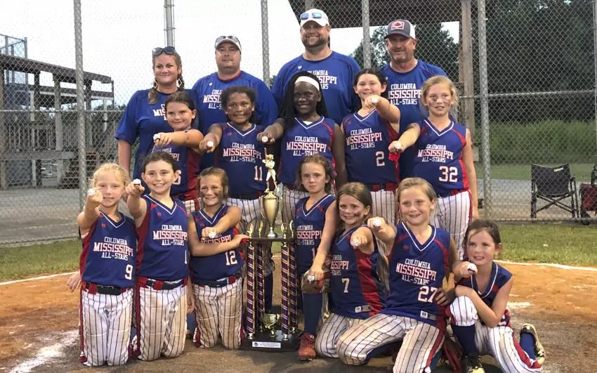 Pictured Above: Columbia 8u includes, not in order, Ava Baughman, Griffyn Harmon, Rylee Freeman, Maycee McKenzie, Zia Buckley, Kloe Stringer, Morgan McKenzie, Marley Smith, Ainsley Armstrong, Harley Ramshur, Laleigh Duncan and Addison Walters and coaches Jason McKenzie, Todd Harmon, Kelli Harmon and Ryan Freeman.