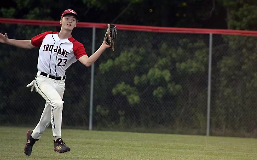Pictured Above: West Marion's Josh Boone makes a running catch in center field in the south state championship. | Photo by Joshua Campbell