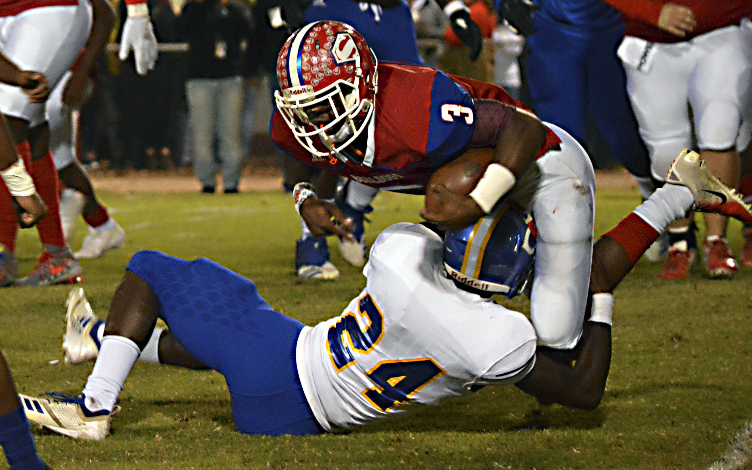 Pictured Above: Columbia outside linebacker Kevon Cloyd makes a tackle for loss against Seminary Friday night. | Photo by Joshua Campbell
