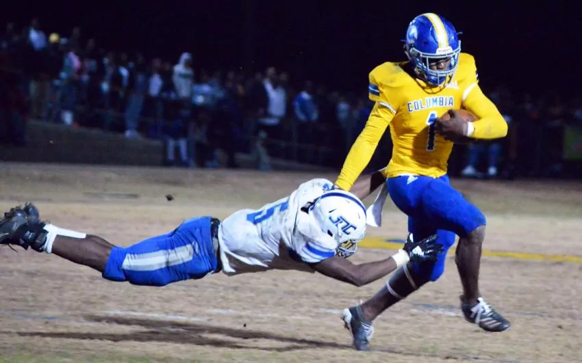 Kentrel Bullock and Johnson combined for 372 yards and five touchdowns on the ground in the first matchup against Jeff Davis in October but were limited to just 44 yards on 22 carries without a touchdown Friday night. The Jaguars loaded the box, which they did the first time and basically every team Columbia has played has done this year, but their team speed was able to keep the duo from getting into the open field. Bilderback said their team speed coupled with the lack of execution both up front and from the backs played a part.