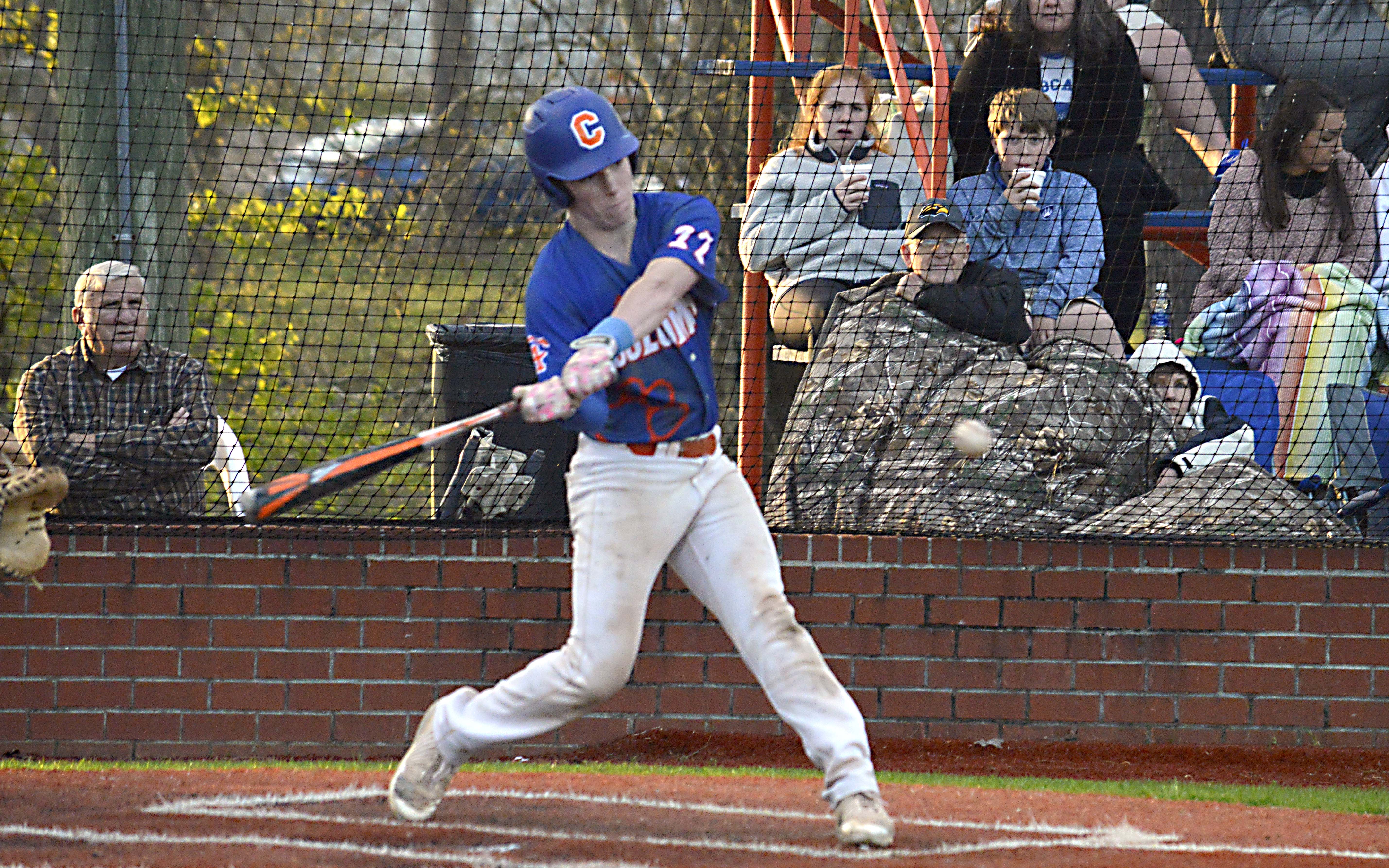 Pictured Above: Columbia Academy's Patrick Gill laces a double off the center field wall. | Photo by Joshua Campbell