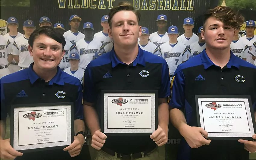 Pictured Above: Columbia High School’s Cole Pearson, left, second-team, and Trey Hobgood and Landon Sanders, first team, earned All-State honors in 3A. West Marion’s Shelby Terrell (first team) and Trace McNabb (second team) were also recognized. | Photo Submitted