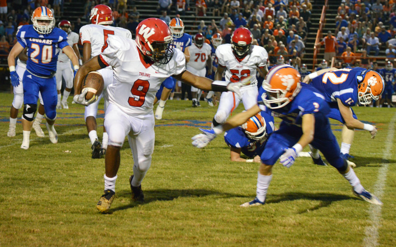 Pictured Above: West Marion's Noland Miller Jr. breaks a tackle to get into the open field Friday night against Columbia Academy. | Photo by Joshua Campbell