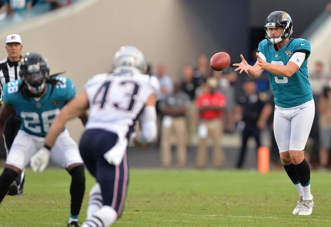 Pictured Above: Jacksonville Jaguars punter Logan Cooke prepares to catch a snap against the Patriots in 2018. | Photo Submitted
