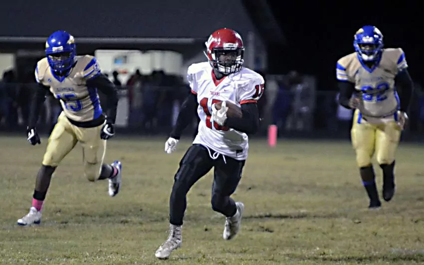 Pictured Above: West Marion running back Ketarious Cotton breaks into the open field against Tylertown. | Photo by Mark Rogers