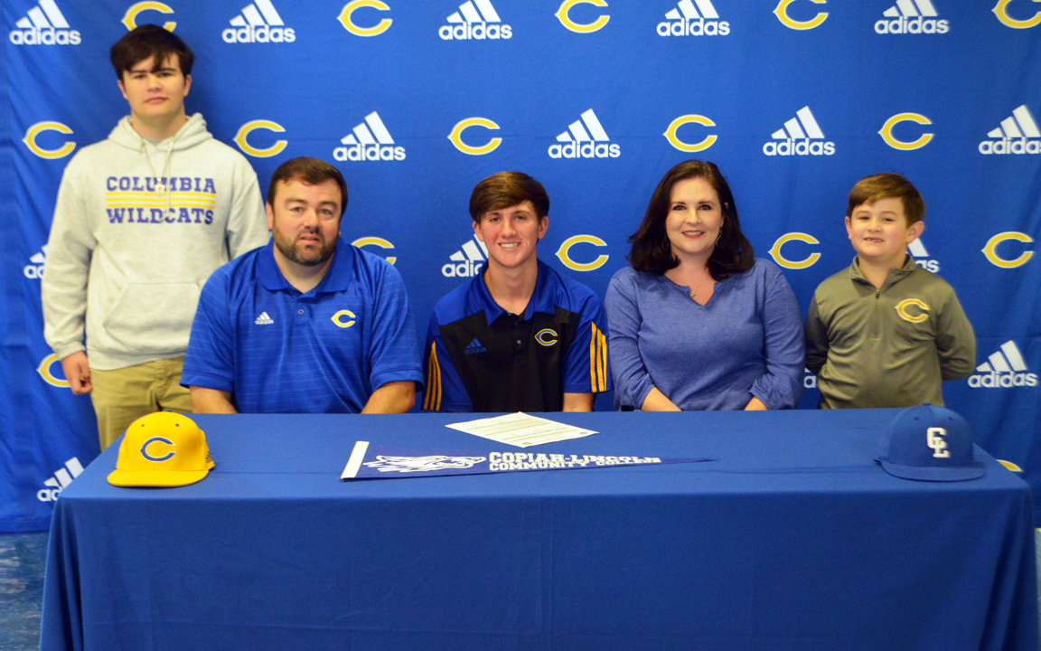 Pictured Above: Columbia High School’s Aiden Singley signs with Copiah-Lincoln Community College Friday. The senior shortstop was joined by, from left, brother Rylan, dad Justin, mother Heather and brother Kellan. | Photo by Joshua Campbell